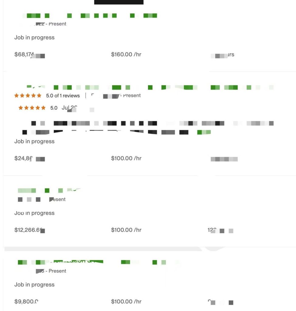 - 高手A:起步和小C一样,也接过低价小单。但她很快集中精力打磨少量高质量案例,并用清晰的展示方式让客户看到价值。不到两年,费率就从10美元涨到100美元以上,还拿下多个超万美金的大单。